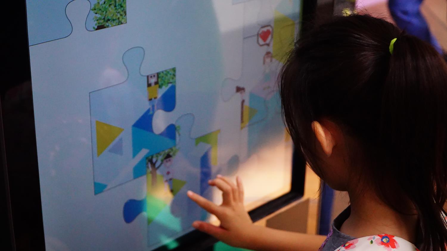A digital exhibition gallery displaying educational information related to paper saving message, low-carbon lifestyle, green practices implemented by corporations, etc.