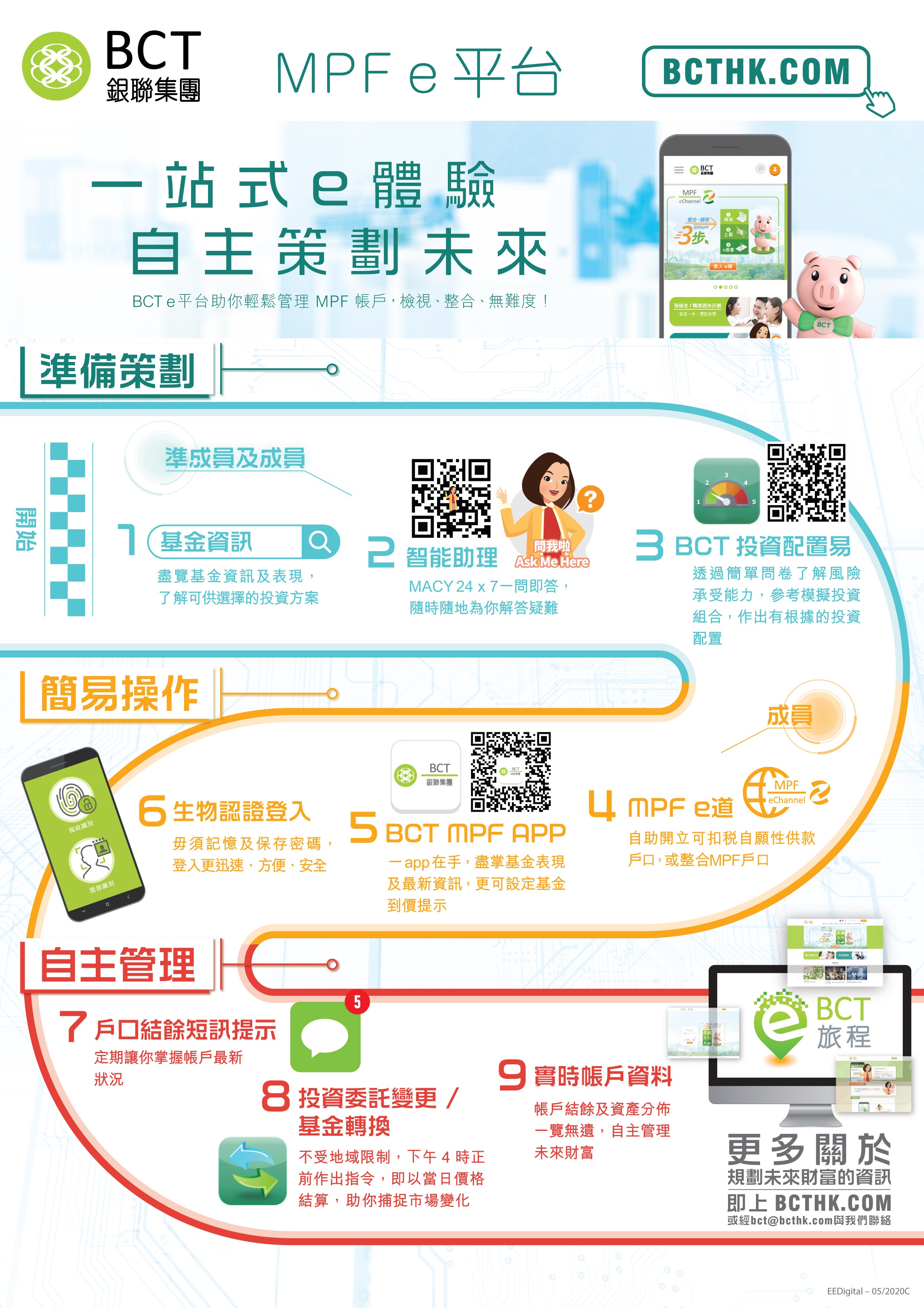 BCT e平台助你輕鬆管理 MPF帳戶,檢視、整合,無難度!按此一圖盡覽BCT的e旅程。